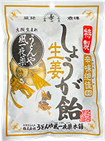 | 京都府 I様 昨日スーパーでうどんや風一夜薬本舗のしょうが飴の袋を見つけ、夜一粒を嘗めたところ、今までのしょうが飴とは全く異なり、最後までしょうがの味が落ちず、まるで生姜そのものの感じがして、あと口も良く、爽やかな感じになって吃驚しました。 これぞしょうが飴!とあまりの嬉しさに思わずペンをとりました。 |